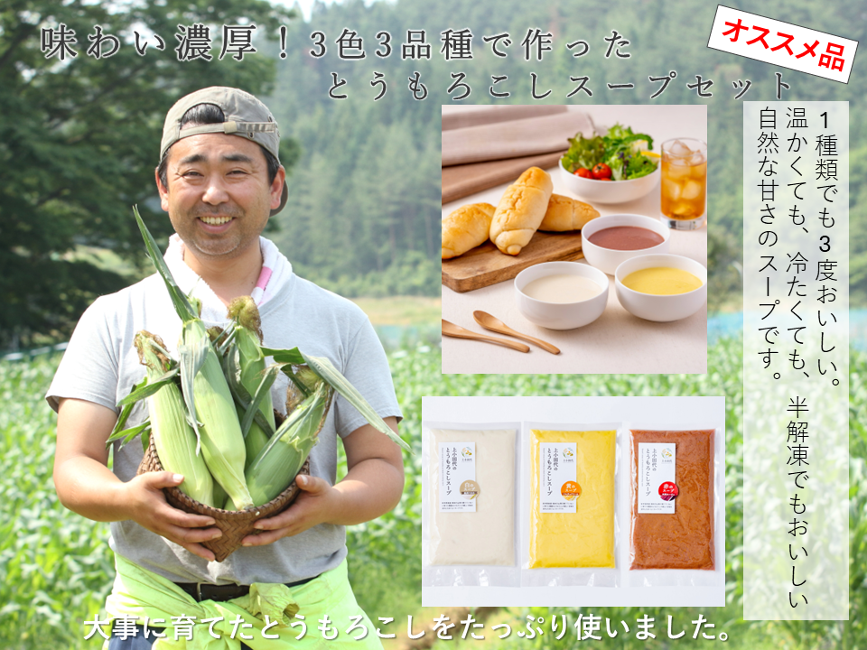 大容量 でっかいパッケージ 3色のとうもろこしスープセット 各1kg